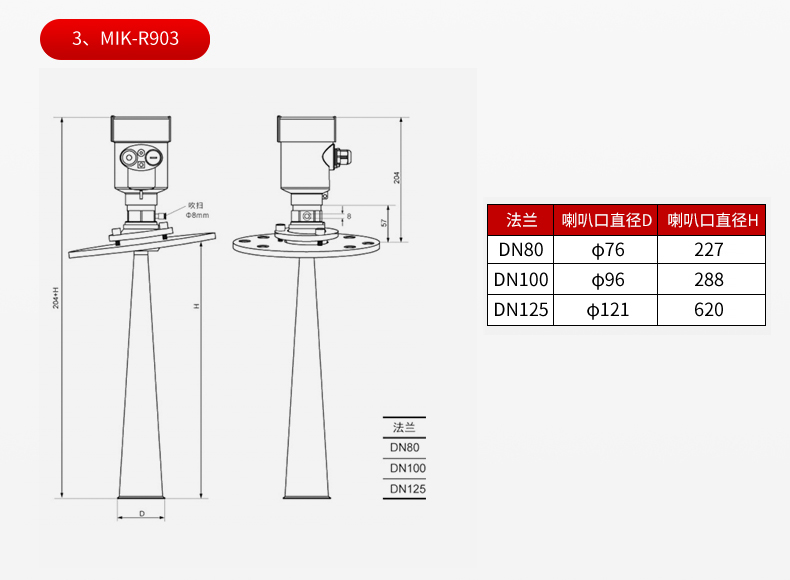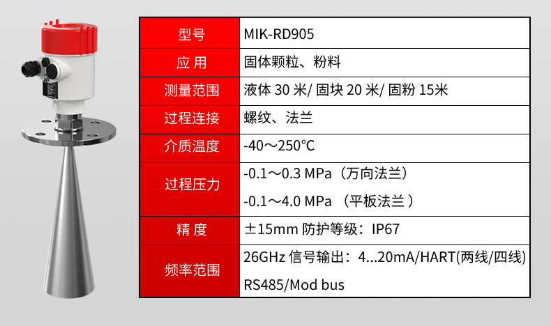 MIK-RD903/905 雷达液位计 固体罐专用款